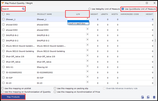 Then search for the item that came in the order and check its Quantity in Pack mapping. Correct the mapping if needed and then click on “Map Products†to save.