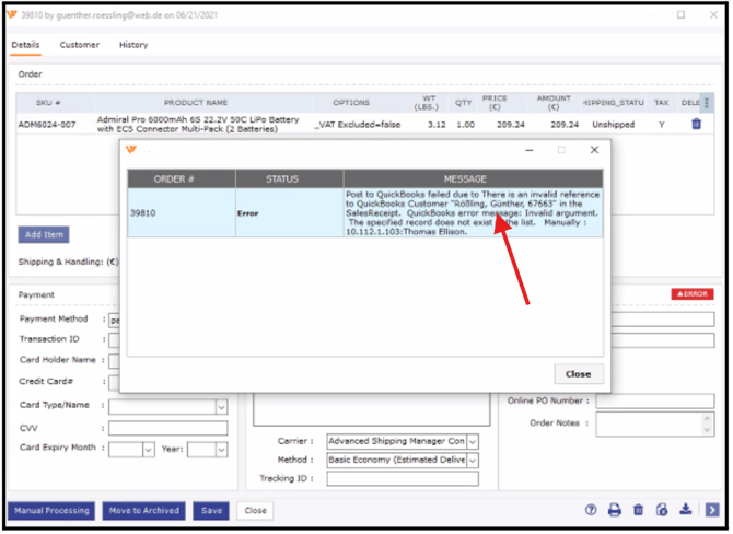 By following these steps, you should be able to resolve the "Customer not found due to special character" error and successfully post your orders to QuickBooks.