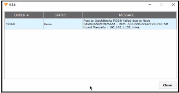 Post to QuickBooks POS failed due to Node SalesReceiptAddItem. Item Not Found