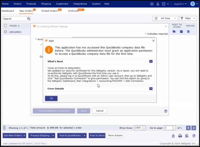 3). After testing the QuickBooks connection, retry posting your orders.