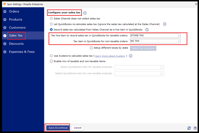 Record sales tax calculated from Sales Channel as a line item in Quickbooks