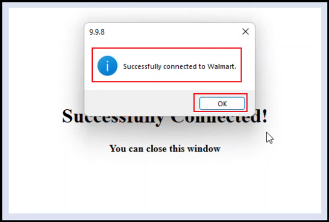 - Also Webgility Desktop shall generate its own success message in the meantime ‘Successfully connected to Walmart’.