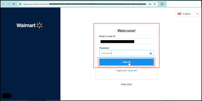 - This will redirect you to your default browser asking you to enter your Walmart marketplace credentials. So update the credentials and click on Login.