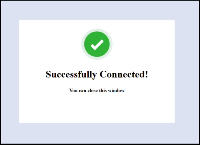 - After a minute of two you shall receive success message ‘Successfully connected’ so you can close that browser window.