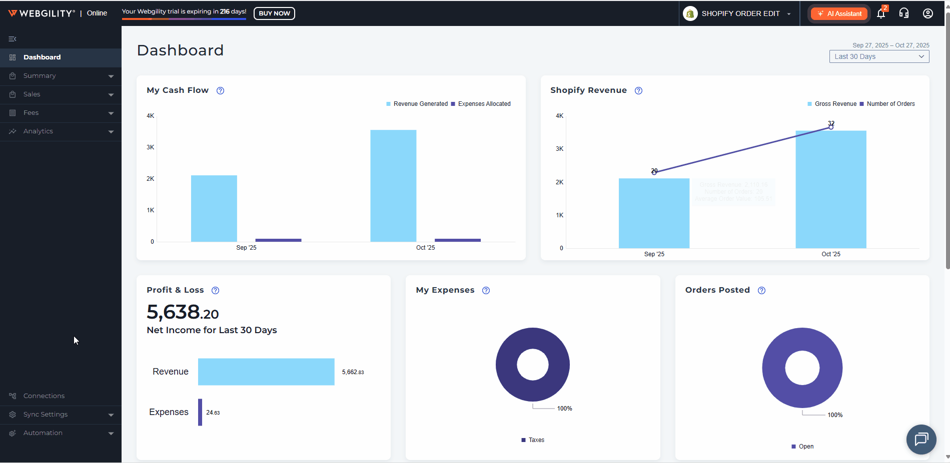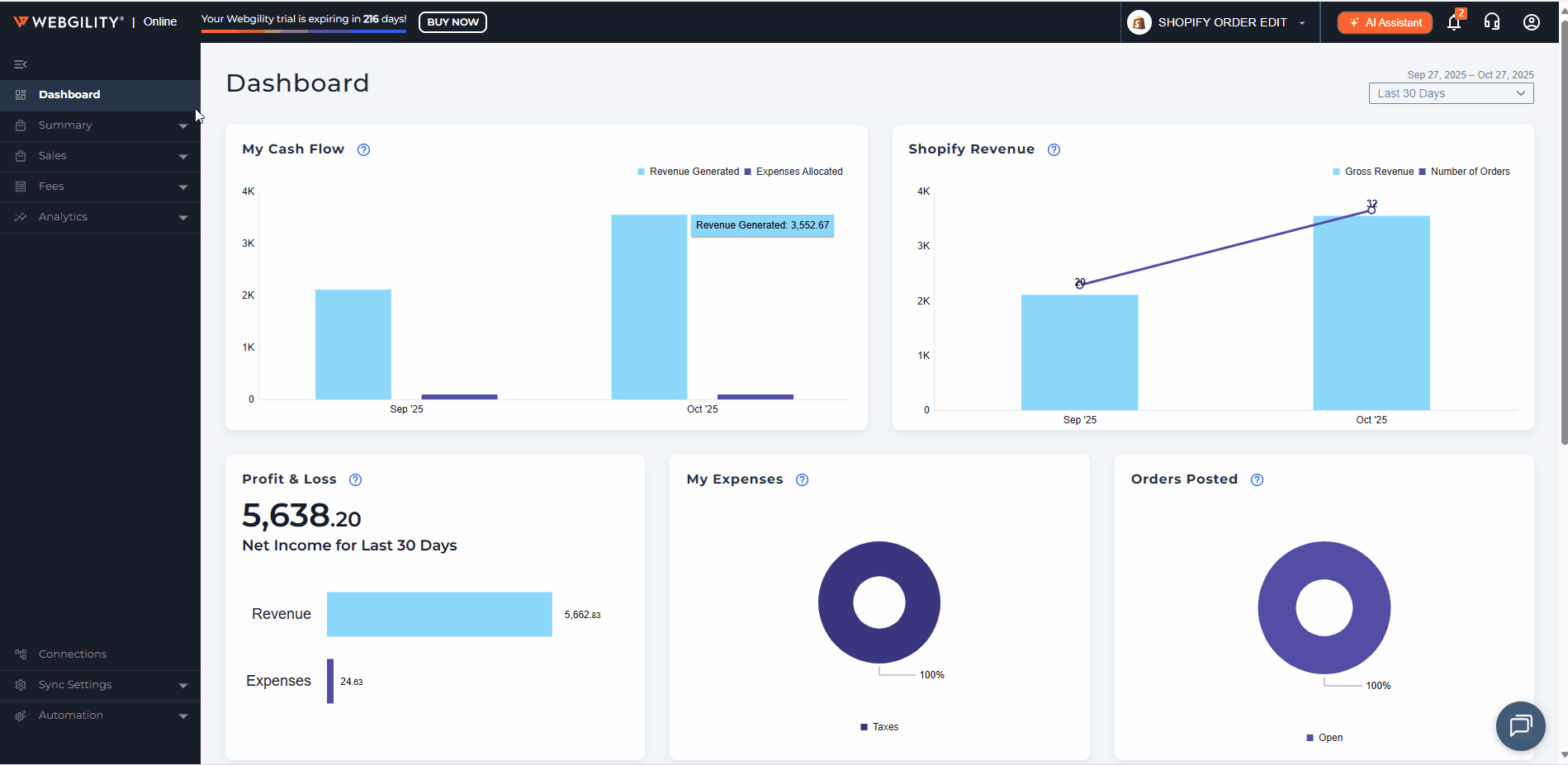 12). Once you have completed the configuration, you can set Webgility to sync your data automatically. To do this, go to Settings > Automation. In this section, you can configure Webgility to perform daily data syncs. Additionally, you have the option to activate email notifications, which will send you a summary of the posted data directly to your inbox.