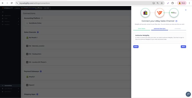 6. Once the eBay account is successfully connected, you will see a confirmation.