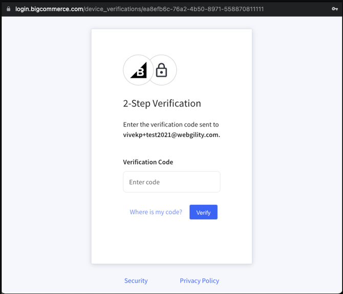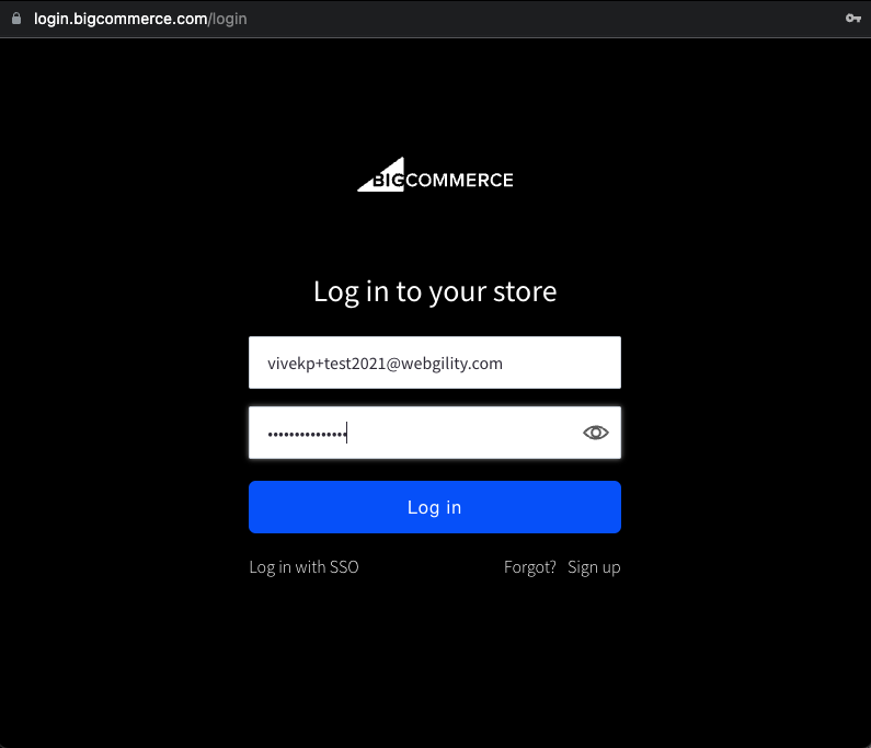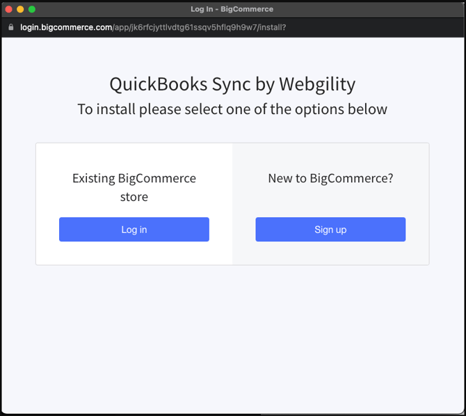 A BigCommerce pop-up will appear, prompting you to log into your BigCommerce account. (Ensure pop-ups are allowed in your browser for this step.)