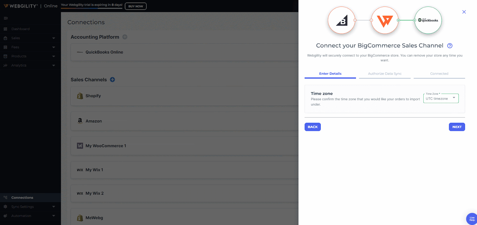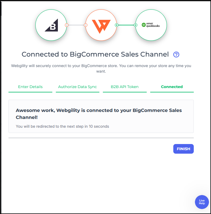 Your BigCommerce store is now connected to Webgility Online! You can start managing your sales channel directly from Webgility Online.