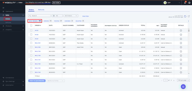 3. This will unpost the orders from QuickBooks Online, and move the orders back into the New Orders tab in Webgility Online.