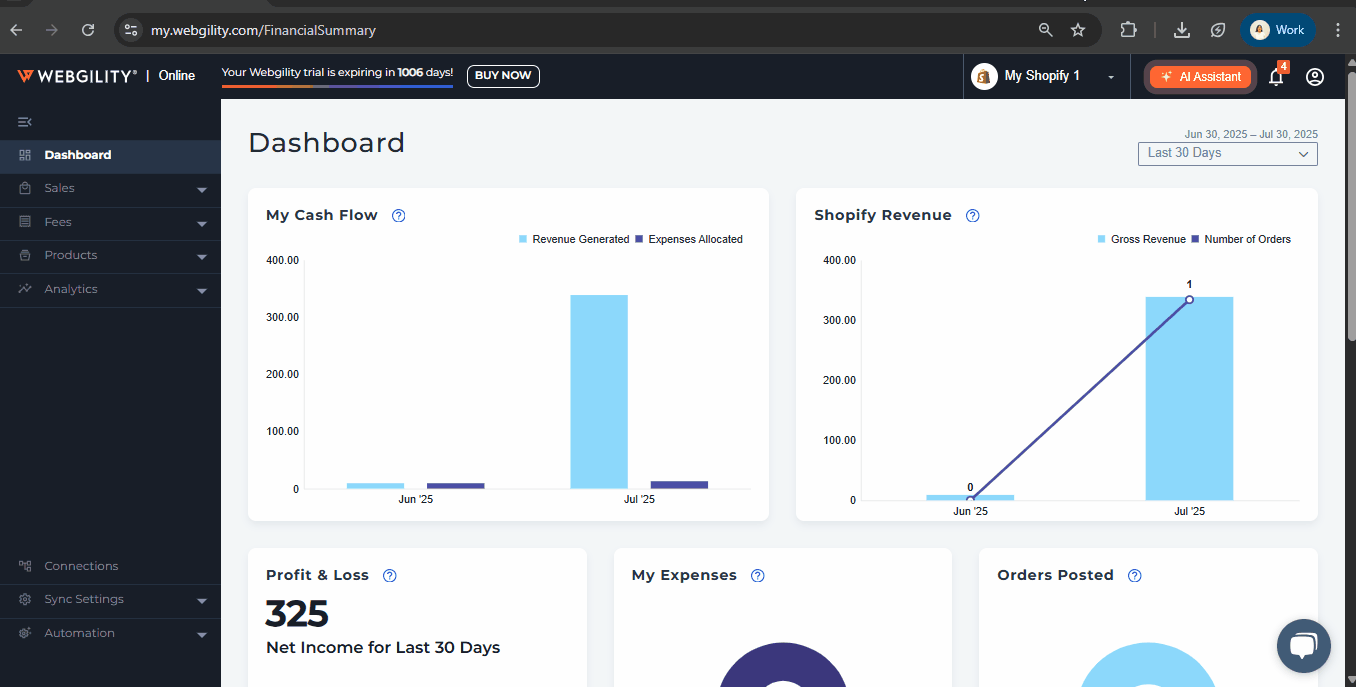 This article guides Webgility Online users on how to access and utilize Webgility Analytics within Webgility Online. It outlines the different types of reports available Sales, Profitability explaining their purpose and the insights they provide. Users will learn how to log in, navigate to the Analytics section, and apply filters or drill down into specific data for detailed performance analysis. By following these steps, users can gain actionable insights into sales performance, profitability trends, and payout details, enabling better business decision-making.
