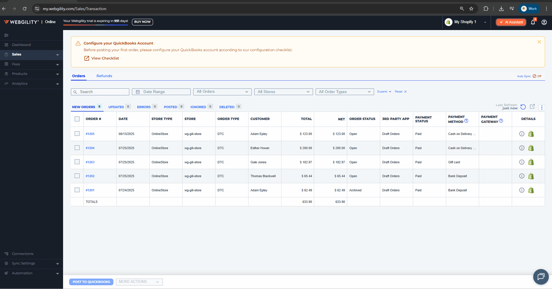 Disclaimer: Do not disconnect and reconnect the sales channels in Webgility Online, as this will clear all previous data and settings.