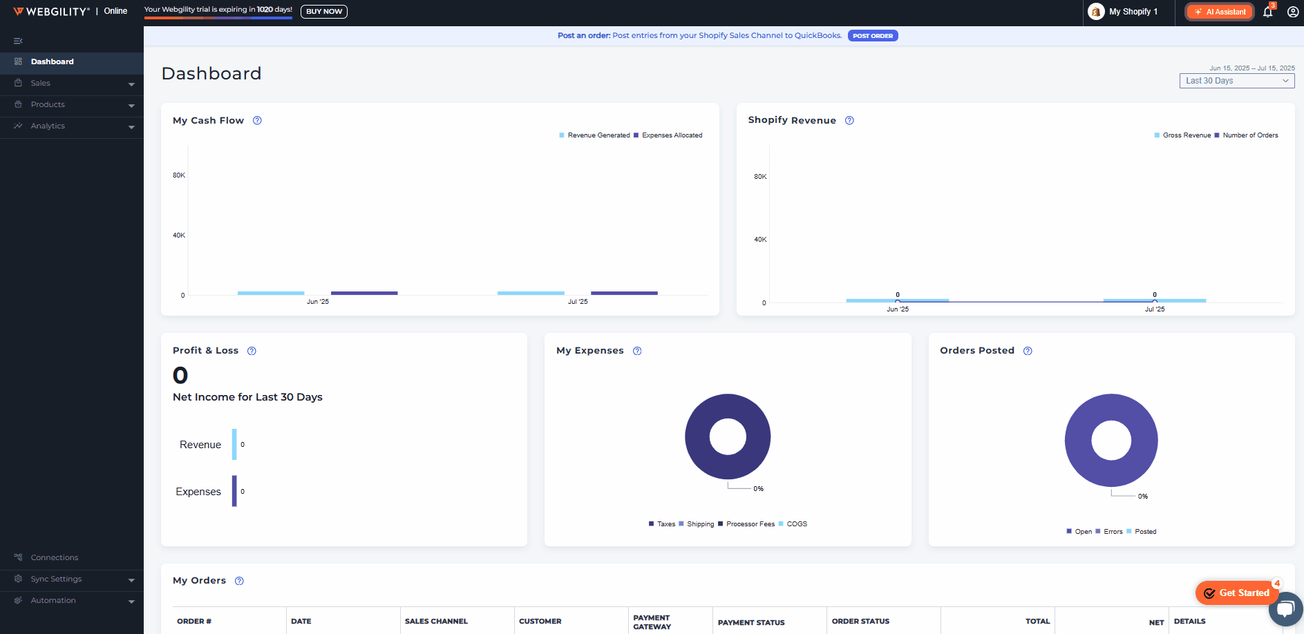 Flag the order with an error: If this option is selected then while posting an order if an item on the order is not found in QuickBooks Online then Webgility Online will flag that order as errored and move it to the Errors tab.