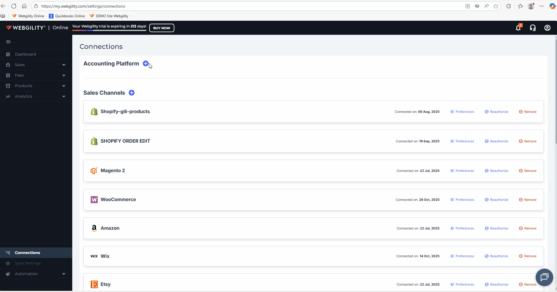 - Connect Webgility with Etsy