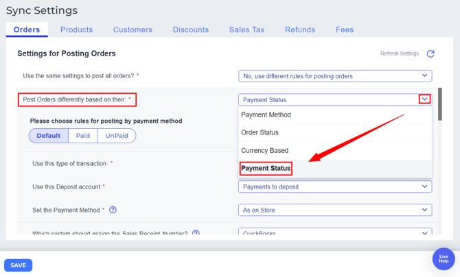 Post Orders on the Basis of Payment Status in Webgility Online