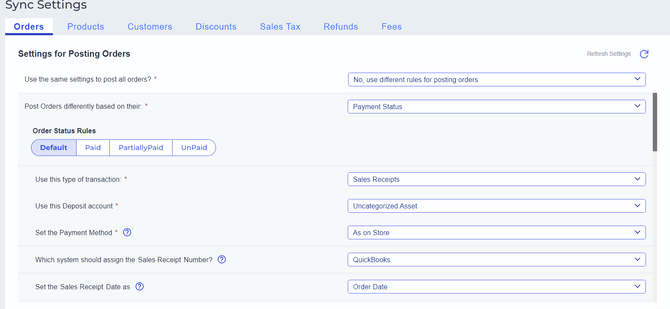 1. Navigate to Sync Settings > Orders