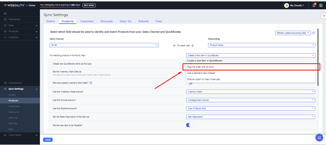 Step 1: Verify Product Mapping Ensure the product causing the error is mapped correctly between your sales channel and QuickBooks Online. Follow the steps in this helpful article on: Mapping and Remapping Products in Webgility Online