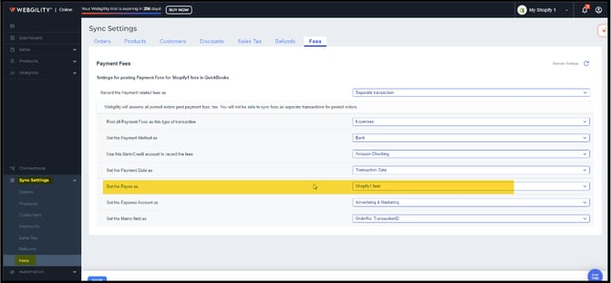 3. After that, select the correct Payee under Sync Settings> Fees and click Save to update your configuration.