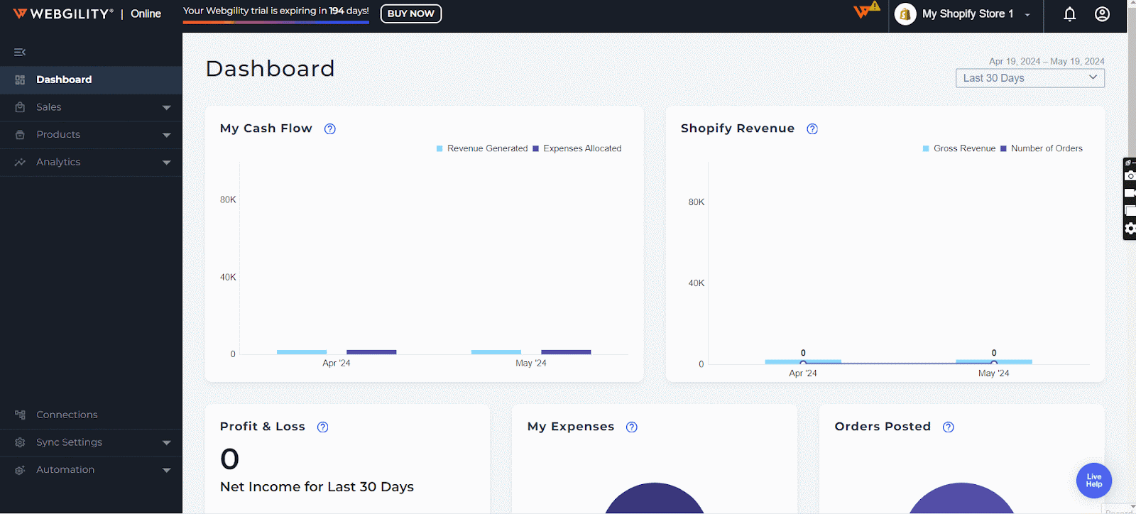 Export functionality for Orders, Refunds, Products, and Matched/Unmatched Items in Webgility Online