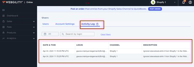 This article helps Webgility Online users manage their Webgility Online account by providing step-by-step instructions on adding users, enabling two-factor authentication (2FA), and viewing activity logs. It is intended for account administrators and users who need to control access, enhance account security, and monitor user activity within the platform.
