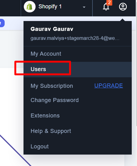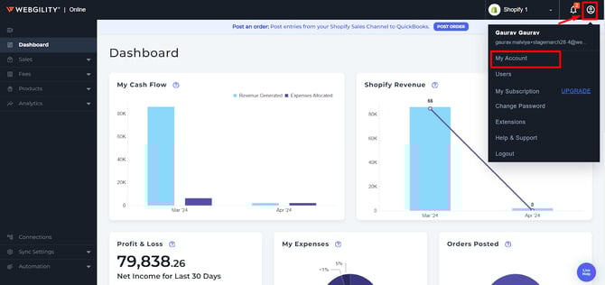 My Account, Users, 2FA Feature & Activity Logs - Webgility Online