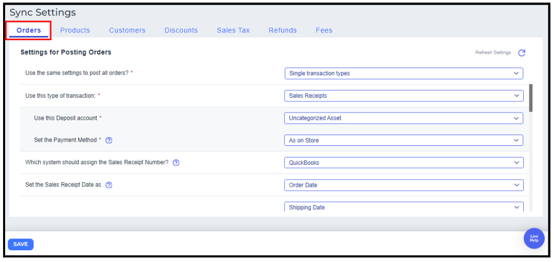 2. Next, proceed to the Orders tab to set up the posting configurations.