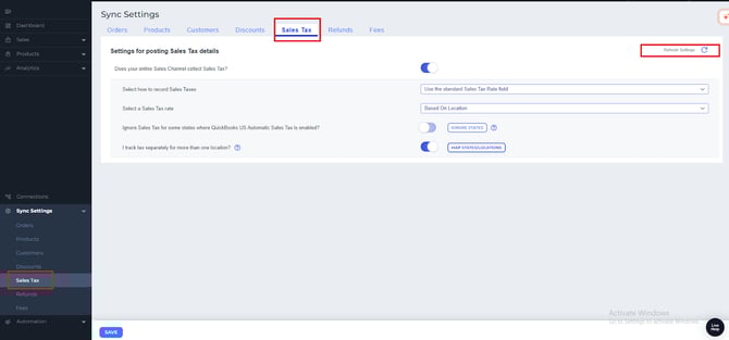 Step 6: Click on "Sales Tax" and then select the refresh button and click on Save.