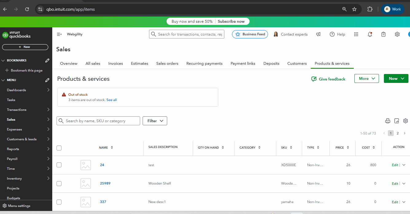 Step 1: Navigate to the Item in Quickbooks Online