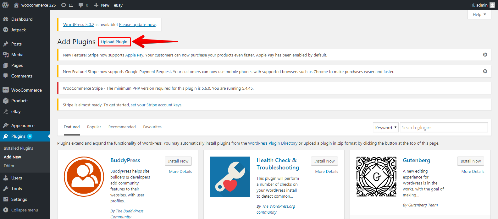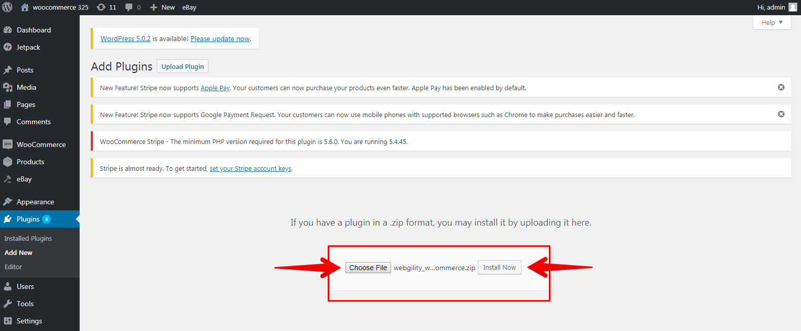 • At the top of the page, click Add New to install the Webgility Extension you downloaded.
