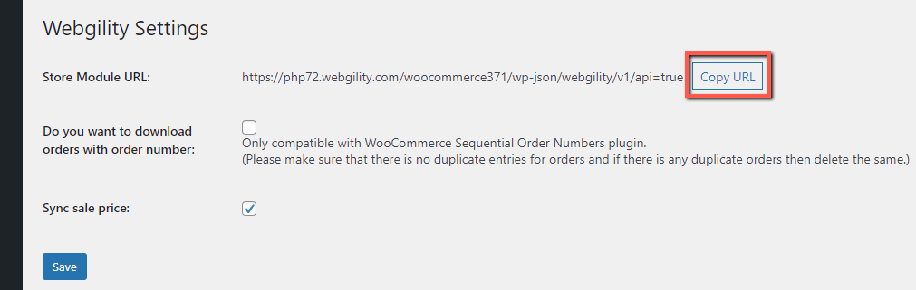6. Copy the Webgility Extension URL Again