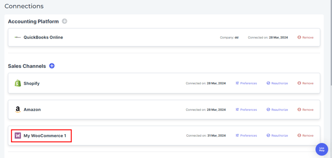 7. Reconnect the WooCommerce Sales Channel in Webgility Online