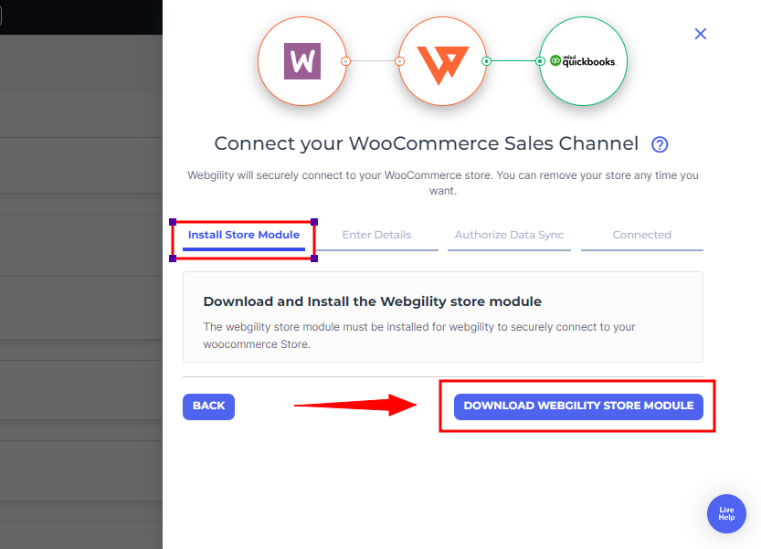 4. The subsequent step involves downloading the Webgility Extension file and installing it as a WooCommerce extension.