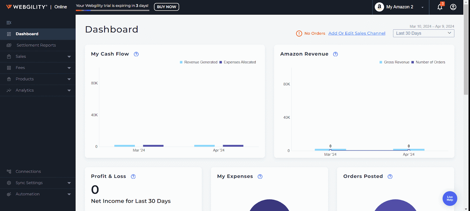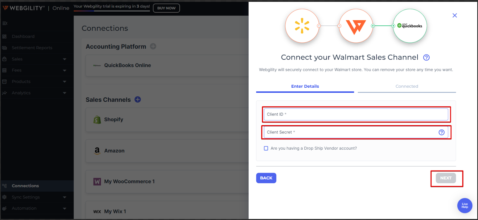 Follow these steps to connect Webgility Online with Walmart