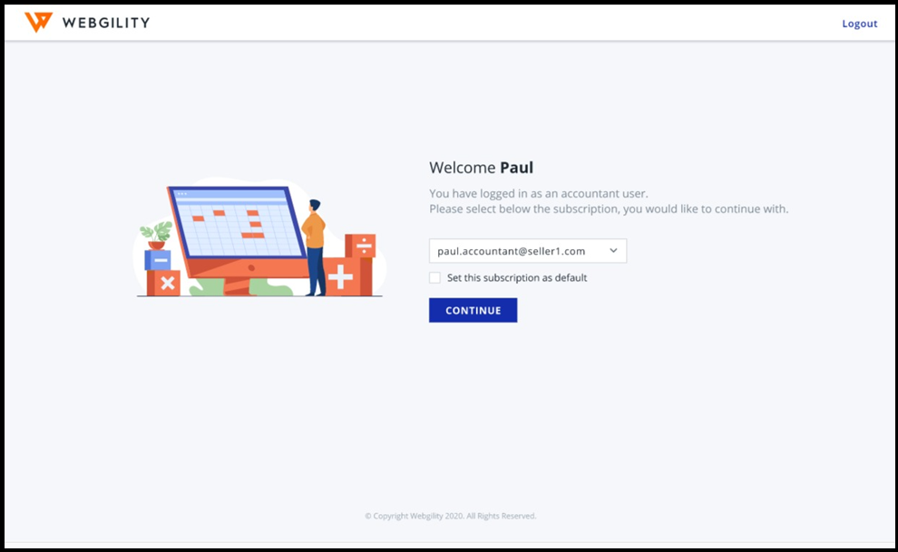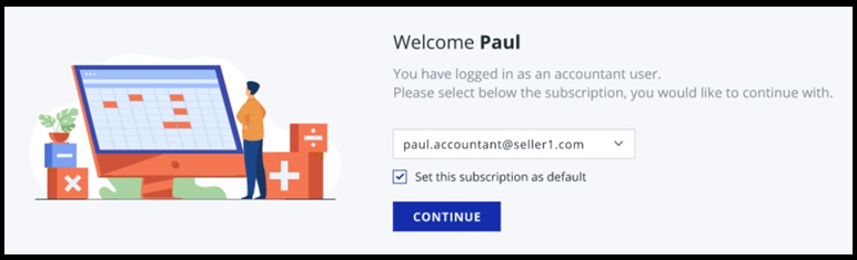 • The Accountant logs into a Subscriber's account and switches between different Subscribers' accounts that have received invitations for access