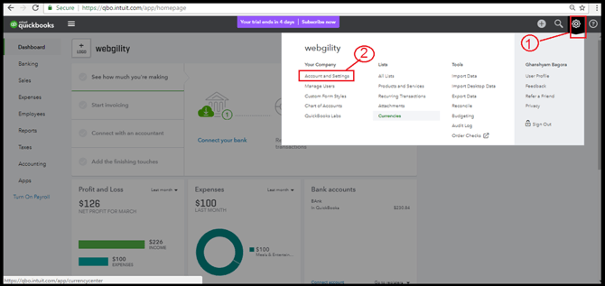 Step 1: Log in to your QuickBooks Online Account and click on the gear icon in the upper right hand corner.