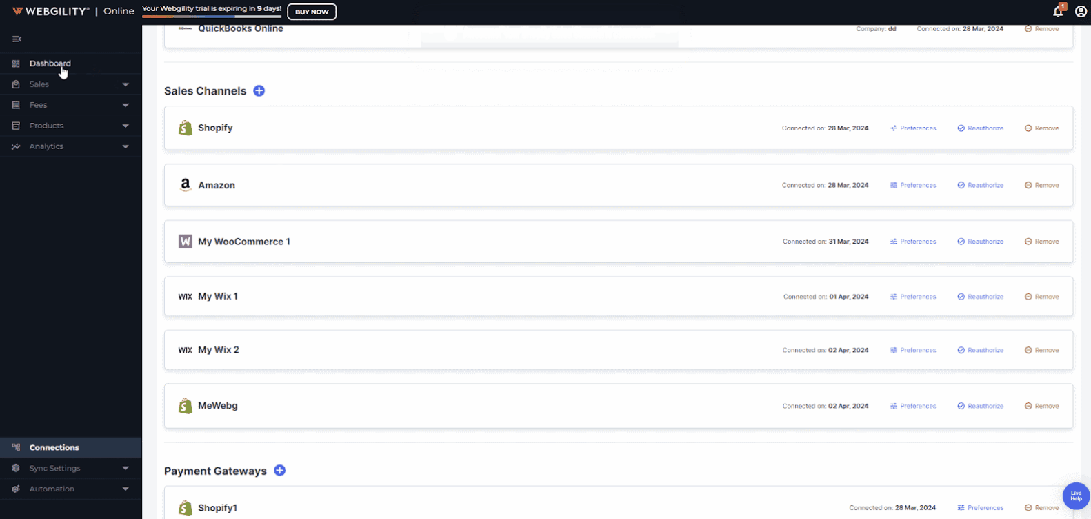 3. Reauthorize Webgility: