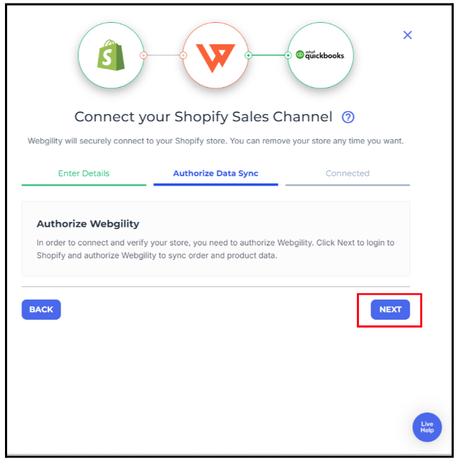 - Click Next again to authorize Webgility.
