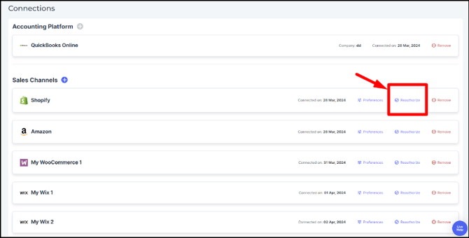 1.3 Reauthorize the Sales Channel Connection