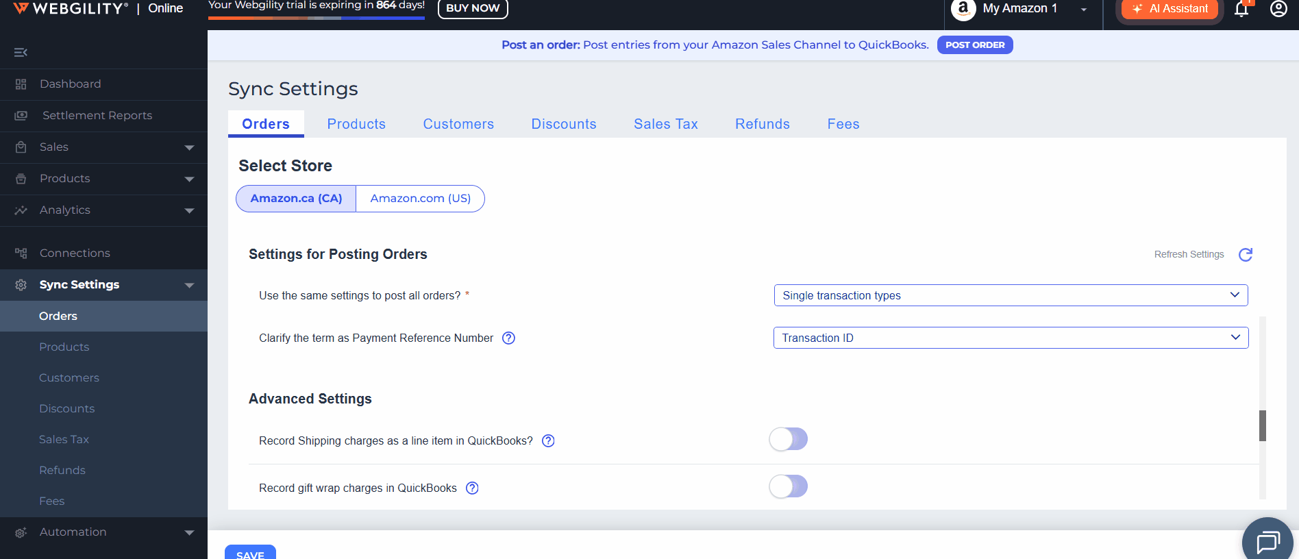 This article will guide you through the recommended settings for Amazon sales channel connection with Webgility Online.