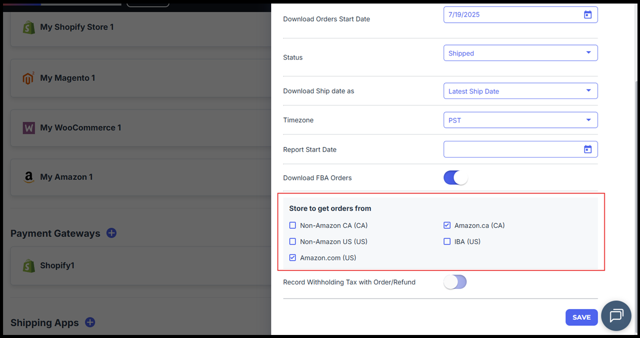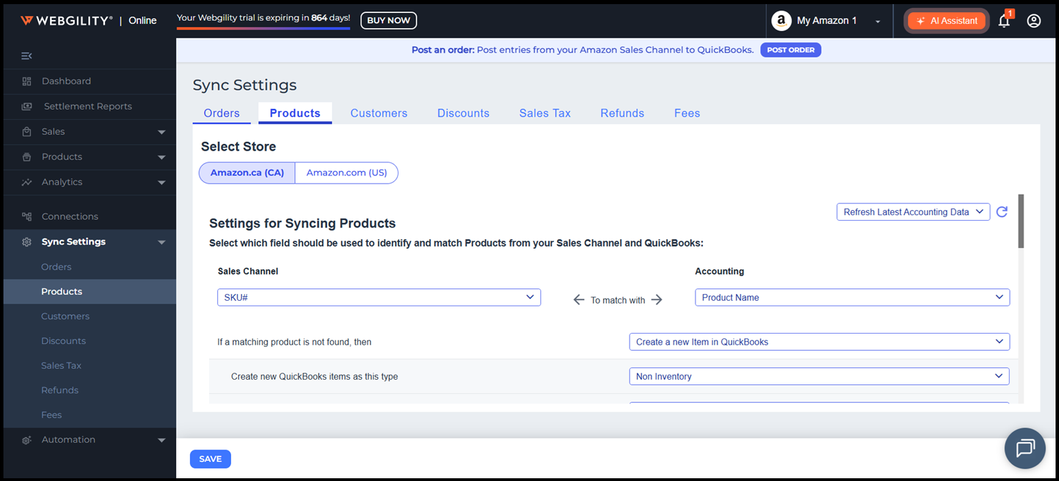 Recommended Settings for Amazon Sales Channel with Webgility Online
