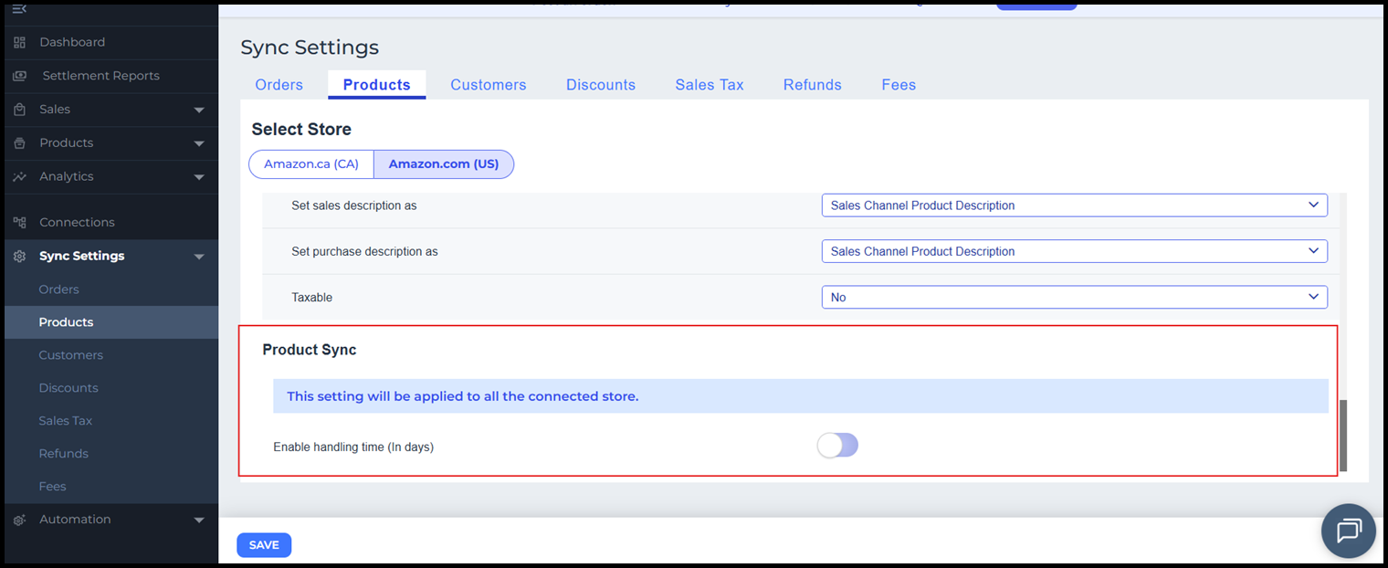 Enable handling time (in days) enabling this option will allow you to update handling time while syncing the quantity from Webgility Online. (This setting is optional)