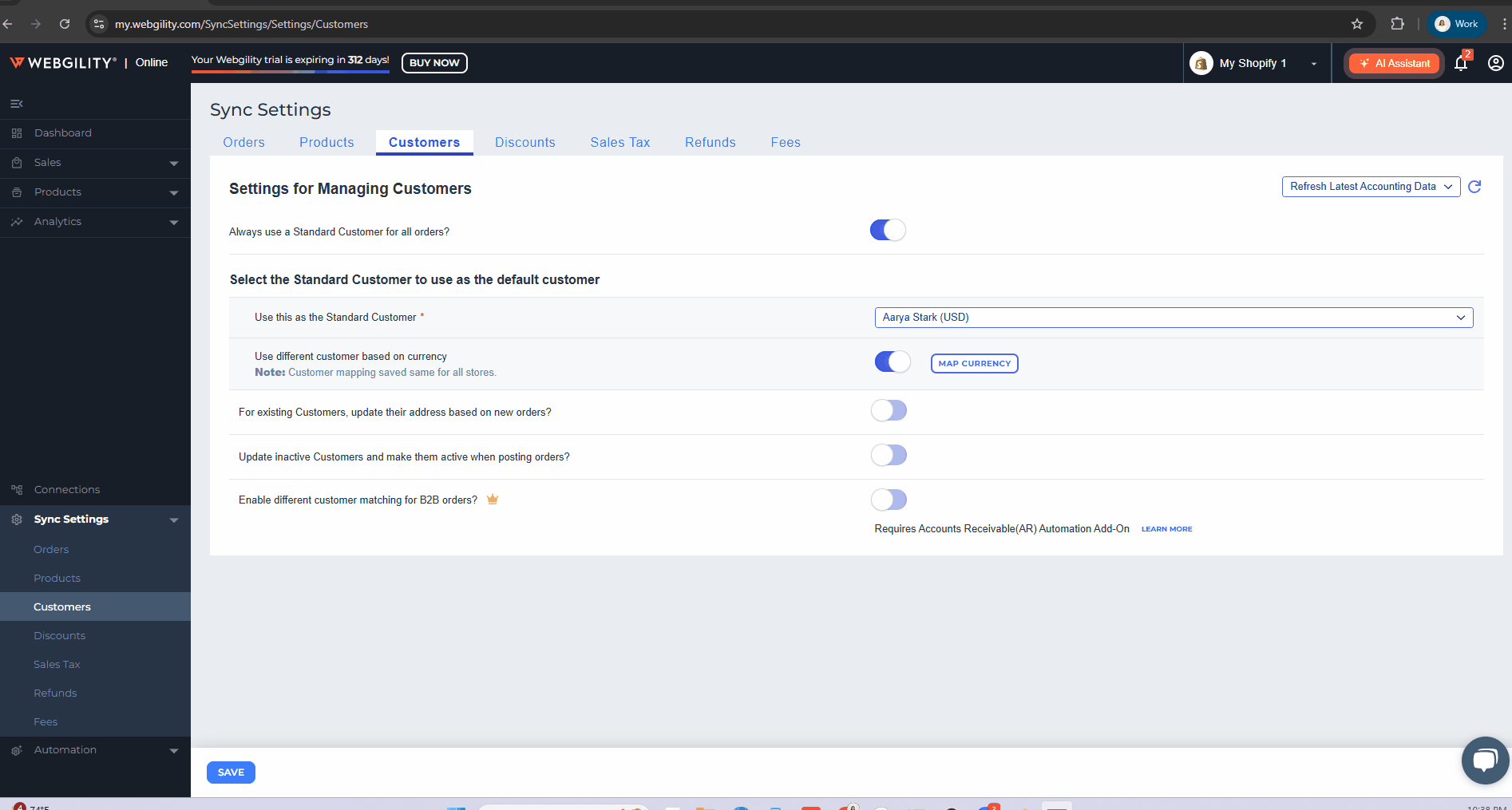 Log in to your Webgility Online account by visiting https://my.webgility.com/