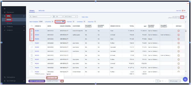 • Select the orders by clicking on the checkbox and attempt to post them. Orders with matching items in QuickBooks Online will post without error.