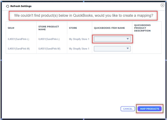 • If items still don't match, you'll be prompted to map the products.