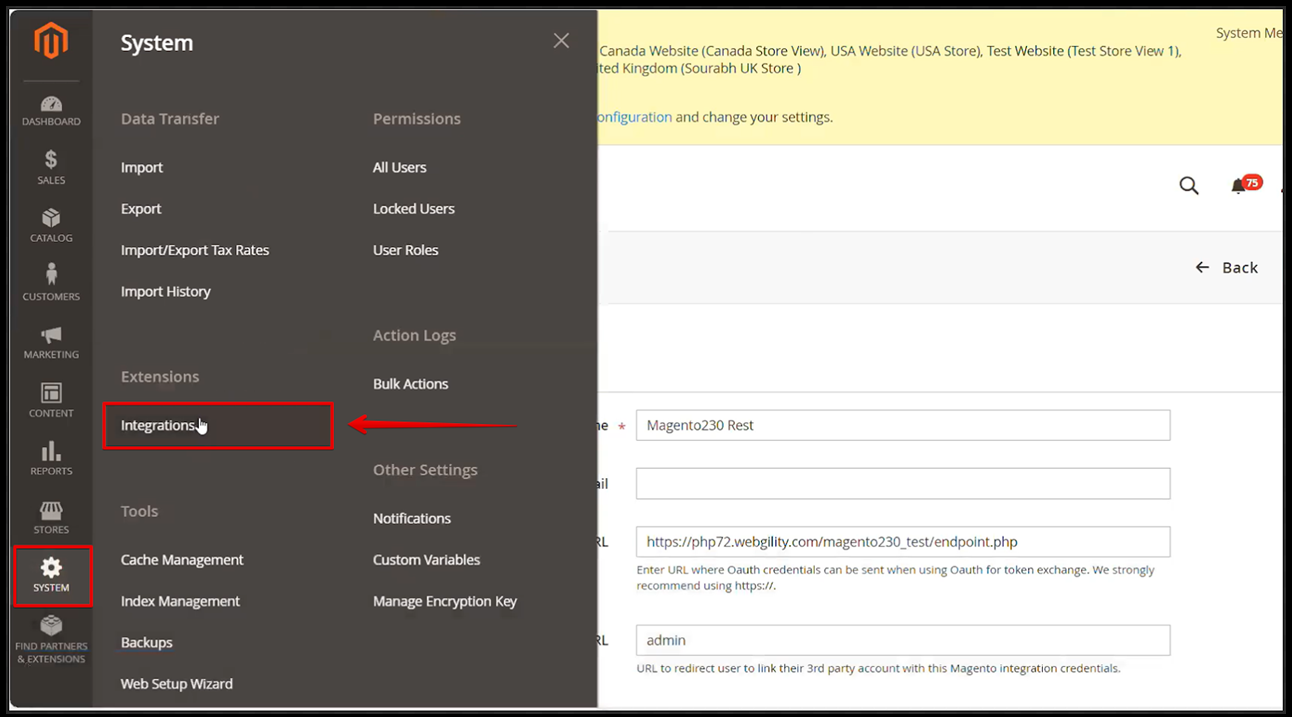 Go to System> Integrations