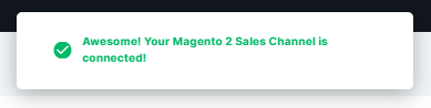 8. Upon successful connection of the sales channel, a notification window will confirm the connection, and you will find the Magento 2 sales channel profile listed under the Sales Channel column.