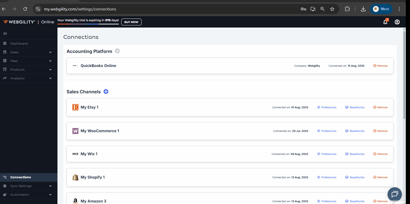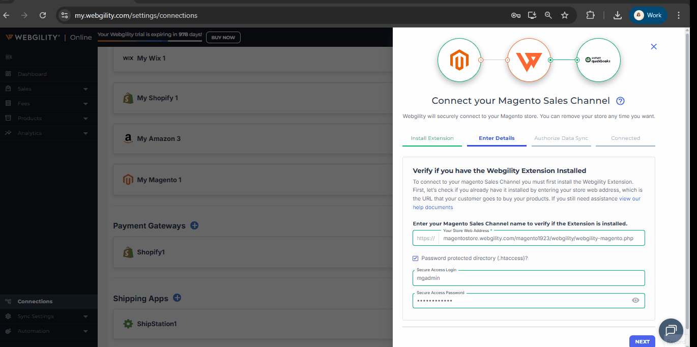 2. Confirm Sales Channel URL and provide Webgility Extension Access