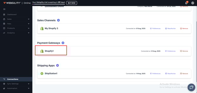 How to Connect Shopify Payment Gateway with Webgility Online