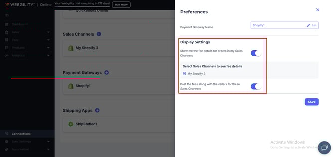 6). Click on Preferences to show and post the fee along with the orders. If you manage multiple Shopify stores, you can also choose which sales channels to download fee details from.