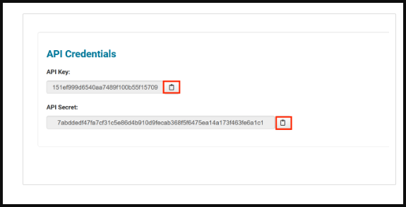 Click the clipboard icon next to the API Key and API Secret to copy the text.