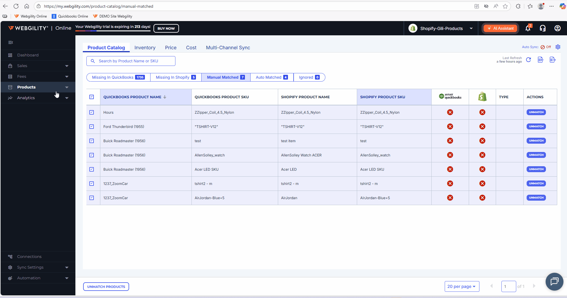 2. In Webgility Online, navigate to Products> Products Catalog.